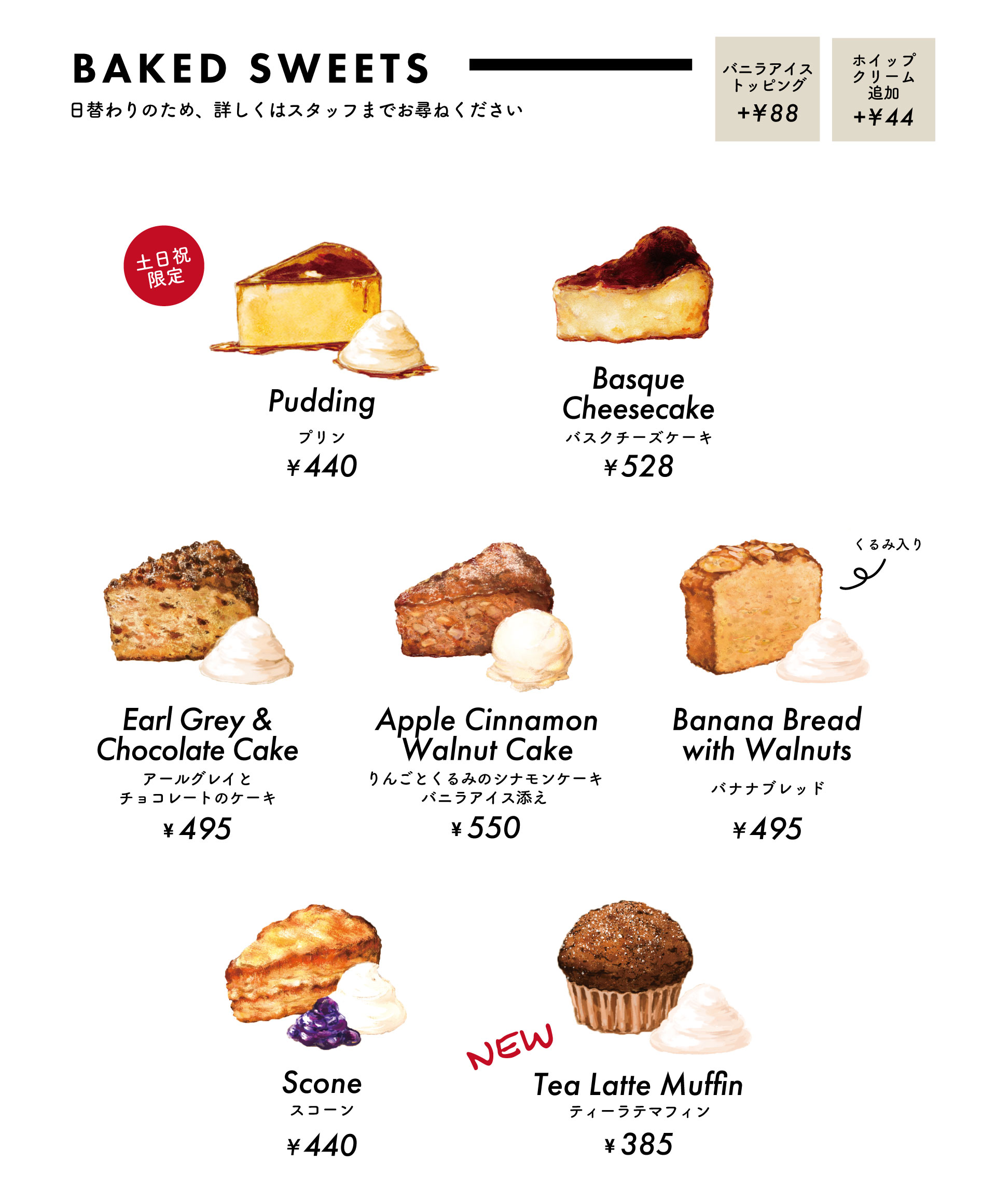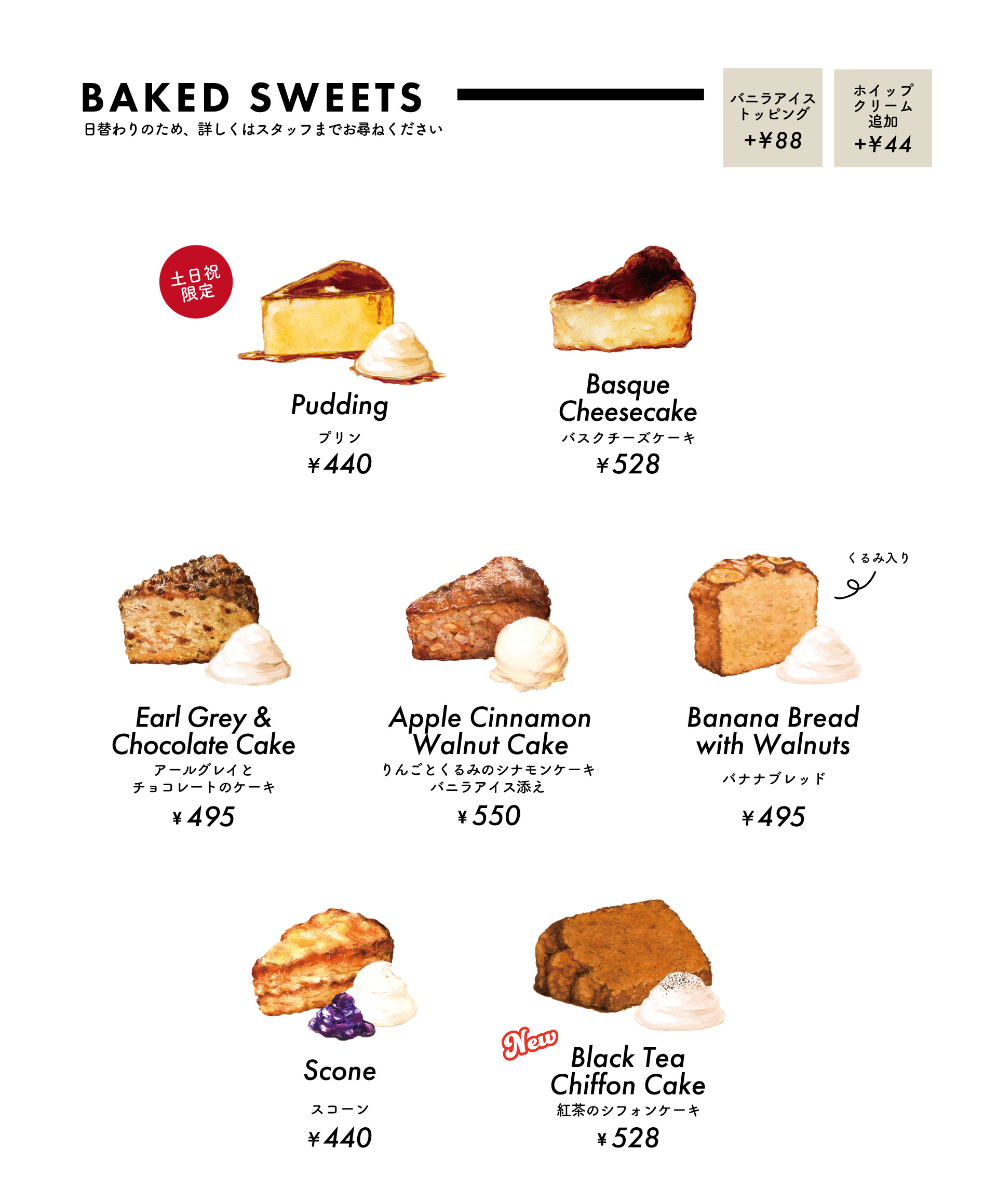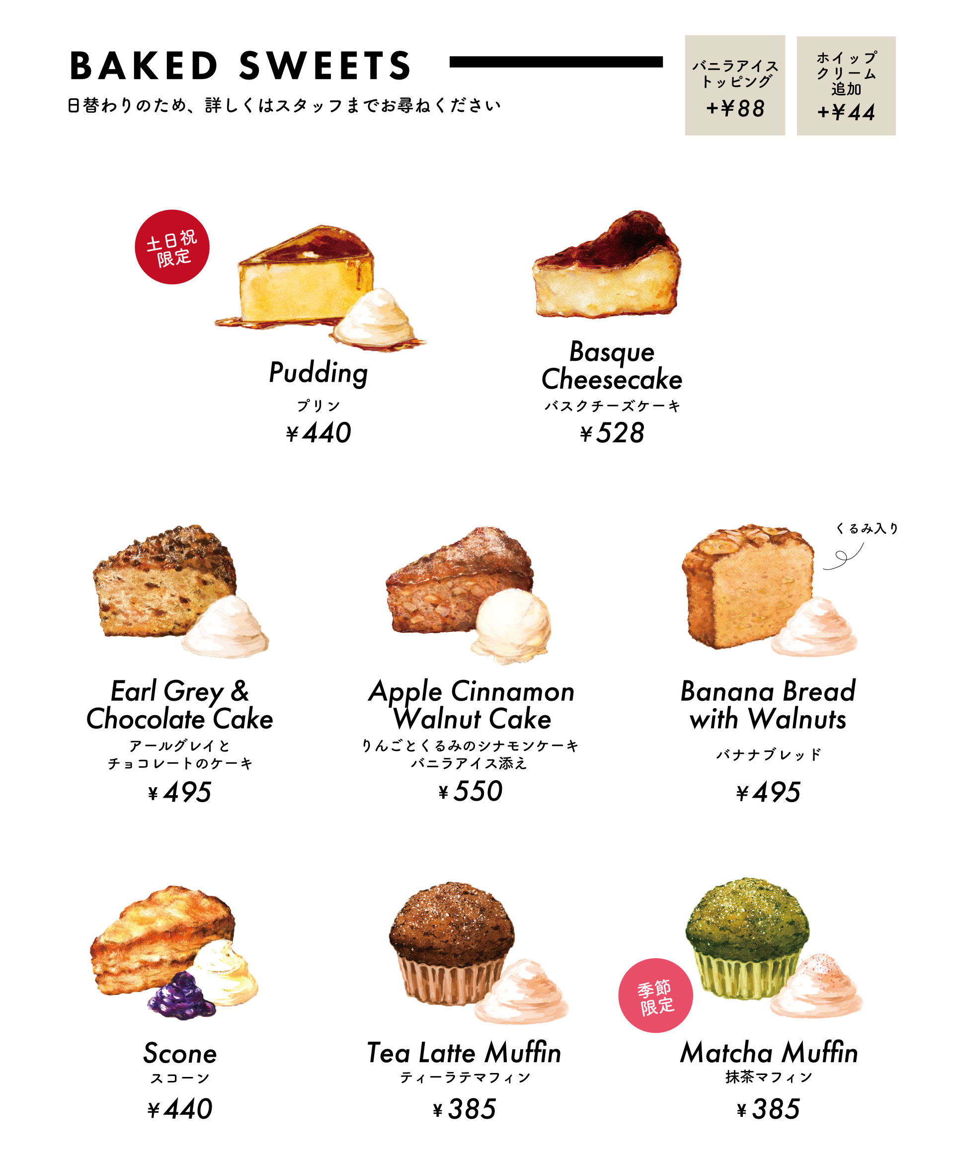 焼菓子は日替わりのため、詳しくはスタッフまでお問い合わせください。