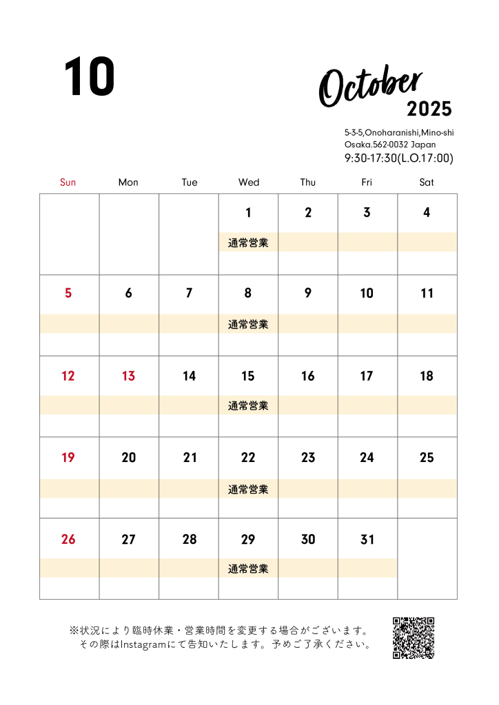 10月の営業日について -
